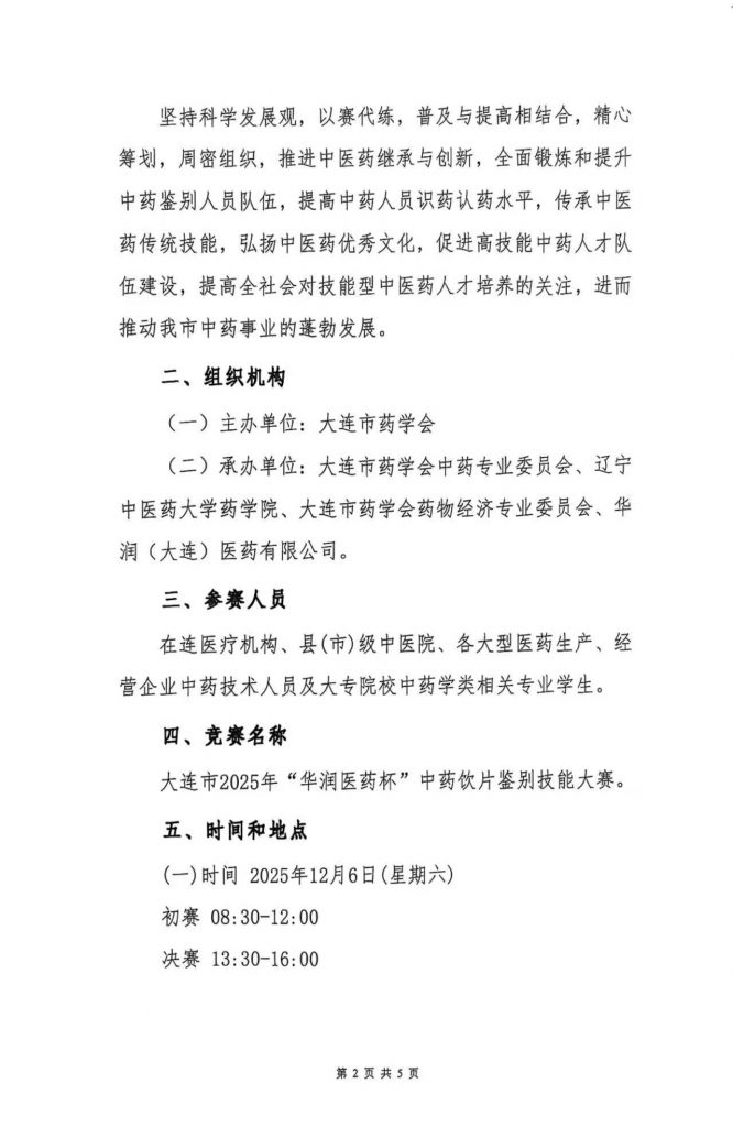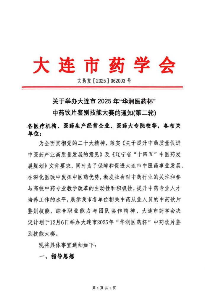 关于举办大连市2025年“华润医药杯”中药饮片鉴别技能大赛的通知(第二轮)